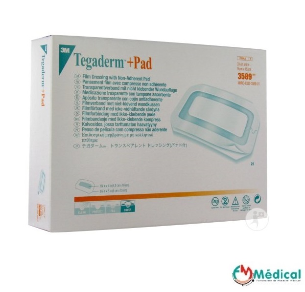 Tegaderm+pad transparent stérile avec compresse absorbante 9 cm x 15 cm 3M, Boite de 25