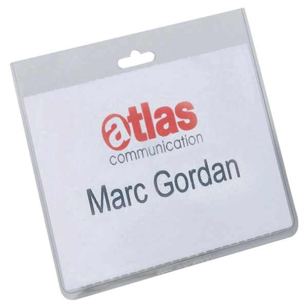 Porte-badge en pvc rigide transparent sans clip. grace a la pochette fermee, une fois que le badge est insere, il est enferme et ne peut ni bouger ni tomber. la perforation oblonge permet d’associer le porte-badge a un enrouleur, un lacet textile, un clip ou une chainette. livre avec insertion bristol. dimensions interieures : h 60 x l 90 mm. boite de 20.
