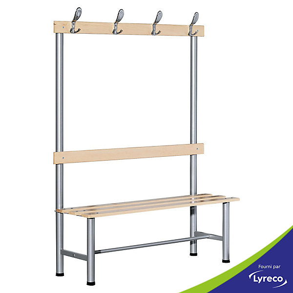 Offre une assise ainsi qu’une accroche pour suspendre des vetements. version simple face. lattes en pin massif. tube metal 30 x 30 mm avec verins de stabilite. livraison directe fabricants en 7 j ouvres. produit livres montes. livraison au rez de chaussee. produit ni repris, ni echange.