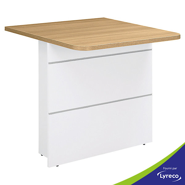 – structure : panneaux de particules surfaces melamines blanc. – dessus : panneaux de particules surfaces melamines decor chene, chant abs 1 et 2 mm. – permet l’accueil des personnes a mobilite reduite. – livraison directe fabricants en 15 j ouvres. produ