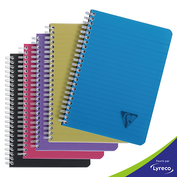 Format A5 (14,8x21cm) – Spirales (double spirale renforcée) – Ligné – 180 pages – Couverture rigide en polypropylène rainuré et translucide – Papier Clairefontaine vélin velouté 90 g/m² – Disponible dans 5 couleurs – Coloris aléatoires – Papier Clairefontaine vélin velouté 90 g/m² –
