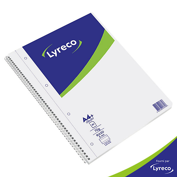 Cahier spirale Lyreco A4+ – 160 pages perforées détachables – ligné