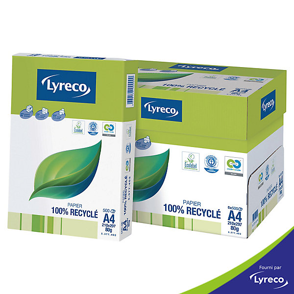 Papier recyclé blanc A4 Lyreco – 80 g – ramette 500 feuilles
