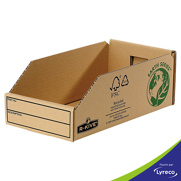 Rangement economique pour les petites fournitures et autres composants. zone d’etiquetage pour faciliter l’identification du contenu. largeur de 147 mm. fabrique a partir de carton 100% recycle certifie fsc. livre par 50.