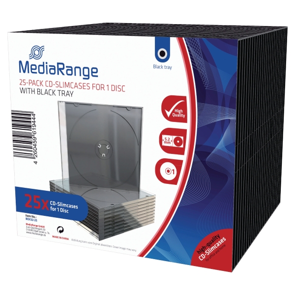 Boîtier slim pour CD/DVD Mediarange – transparent – lot de 25