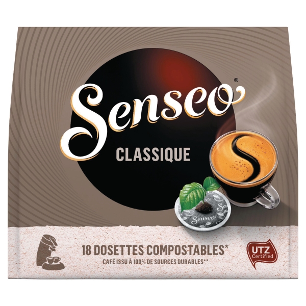 La variete senseo classique est un melange de grains arabica et robusta torrefies a cœur, pour un cafe parfaitement equilibre a la delicate couche de mousse. cultive par des producteurs certifies utz qui mettent en œuvre de meilleures pratiques agricoles, dans le respect des personnes et de l’environnement. dosettes de cafe entierement compostables industriellement. pour votre sante, evitez de manger trop gras, trop sucre, trop sale. www.mangerbouger.fr