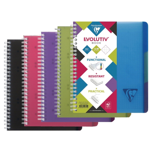 Cahier spirale Clairefontaine Evolutiv’ book Linicolor A5+ 180 pages – quadrillé