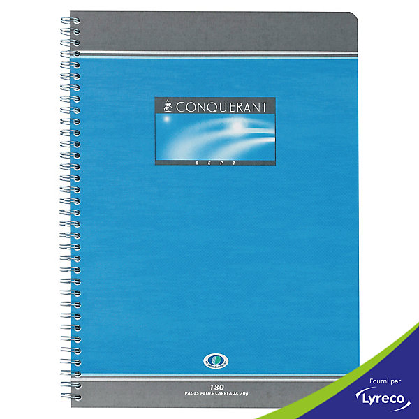 Cahier spirale Conquérant Sept A4 – 100 pages – seyès