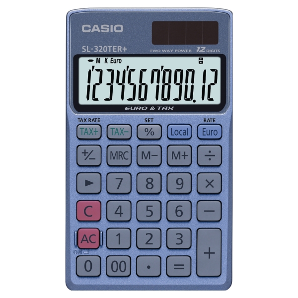 CALCULATRICE DE POCHE CASIO SL-320TER+ – 12 CHIFFRES – BLEU/BLEU CLAIR