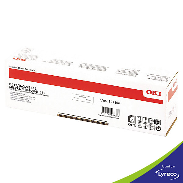 Cartouche de toner noir de marque oki conçue pour les imprimantes oki mb 472dnw / oki b 432dn / oki mb 492dn / oki b 412dn / oki b 512dn
