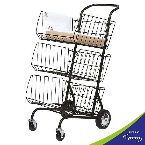 CHARIOT A COURRIER ALBA – 3 PANIERS – METAL NOIR