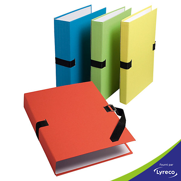 100% ecoresponsables. en carton et papier recycles et recyclables. teintes avec pigments non toxiques, sans chlore ni pelliculage plastique. extensibles jusqu’a 13 cm. fermeture par sangle. boucle metal. format : 24 x 32 cm pour documents a4. coloris assortis : 2 x bleu, 2 x vert, 2 x jaune, 2 x rouge et 2 x aleatoire.