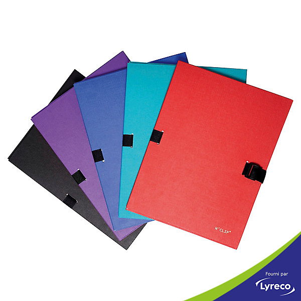 Chemise extensible sangle clip exacompta n’clip recouverte de papier toile vernis. equipee d’un rabat en pied. fermee par sangle et clip. extensible jusqu’a 13 cm. format : 24 x 32 cm. coloris assortis : noir, violet, bleu, vert, rouge.