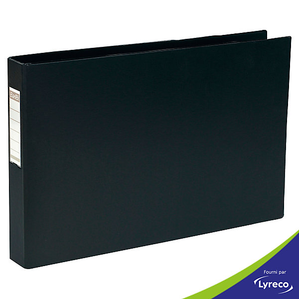 Pvc recyclable. 4 anneaux en d de 40 mm. dos 5,5 cm. etiquette de dos personnalisable gratuitement sur www.elbaprint.com. dimensions : l 48 x h 33 cm pour documents a3. capacite 390 feuilles. coloris noir.