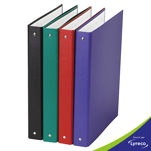 Classeurs 4 anneaux ronds ø 30 mm. polypropylene sur carton fort. pour format a4. dimensions : l 26 x h 32 cm. dos de 4 cm. coloris noir, vert, rouge et bleu.