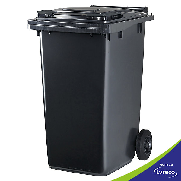 En polyethylene haute densite. grande robustesse. resistance aux uv, aux differentes conditions climatiques et aux produits chimiques. manipulation aisee grace aux roues en caoutchouc et aux poignees integrees sur le corps et le couvercle. systeme de couvercle amortissant le bruit et basculant entierement vers l’arriere. fournie avec une collerette de type din. conforme a la norme en 840-2, 5 et 6. dimensions : longueur 58,3 x largeur 72,9 x hauteur 107,9 cm. poids a vide : 14,2 kg. contenance 240 l.