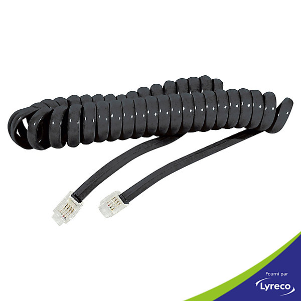 Cordon spirale pour téléphones fixes filaires 4/4 RJ9 – 2 mètres
