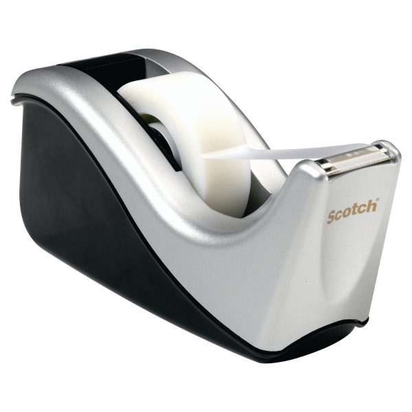 Devidoir de bureau equipe d’un systeme de mandrin amovible. chargement plus facile. ce devidoir est leste pour une utilisation facile a une main. base antiderapante. finition argent. livre avec 1 ruban scotch® magic™ 19 mm x 33 m.