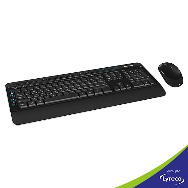 Ensemble clavier et souris sans fil qui rassemble un maximum de fonctions commodes en un design moderne. son repose-poignet doux au toucher et ses touches silencieuses lui procurent un aspect professionnel, elegant et confortable. de plus, son clavier offre toutes les fonctions dont vous aurez besoin : commandes de lecture multimedia, zoom a une touche et touches d’acces rapide personnalisables qui permettent d’acceder aux programmes de la barre des taches. ce clavier est egalement dote du chiffrement aes (advanced encryption standard*), qui vous permet de proteger vos informations en chiffrant votre saisie. clavier azerty. la bluetrack technology de microsoft de la souris vous offre un controle precis sur presque toutes les surfaces, tandis que le pourtour en caoutchouc et le corps legerement plus long de la souris fournit un confort total. de plus, vous pouvez vous deplacer jusqu’a 10 metres de votre ordinateur et conserver une connexion sans fil fiable a votre ord[…]