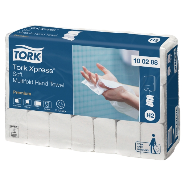 Essuie-mains plié Tork H2 – 2 plis M- extra doux-blanc-21 paquets x 110 feuilles