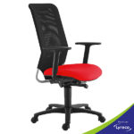 Siege de travail synchrone tissu, dossier en resille tendu sur cadre nylon. mecanisme blocable 5 position avec systeme de securite anti retour ou usage en flottement libre avec contact permanent et reglage en intensite de la pression du dossier. assise rembourree mousse pu densite 35 kg/m³ et reglable en hauteur par verin pneumatique. dossier reglable en hauteur par cremallere. tissu assise et resille dossier en polyester classe feu en 1021.1 & 2. base 5 branches en polyamide injecte teinte dans la masse. roulettes autofreinees. – accoudoirs 1d en option ref. 11061117.