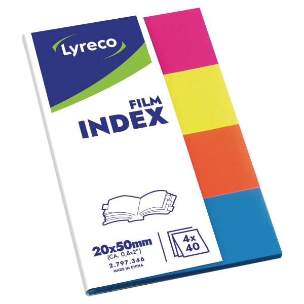 FEUILLET REPOSITIONNABLE LYRECO – PLASTIFIE – 20 X 50 MM – ASSORTIS – 4 BLOCS