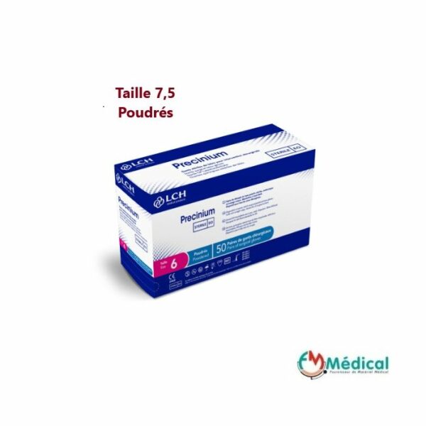 Gants Latex Stériles Poudrés Taille 7,5, Precinium, Boite de 50 paires