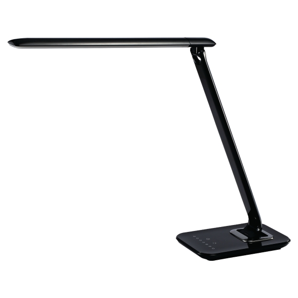 Lampe de bureau led pliable au design elegant avec decor chrome, equipee de led integree d’une puissance de 7 w. bras articule et reflecteur orientable. panneau de commande tactile sur la base avec 7 intensites lumineuses et 5 temperatures de couleur (lumiere plus ou moins chaude) au choix. avec port usb pour recharger appareils electroniques (par ex. iphone ou ipad). efficacite lumineuse max. : 600 lumens. temperature de couleur : 3000 a 6500 k. dimensions : hauteur 41,4 cm, reflecteur 36,4 x 4,2 cm, socle 19,8 x 12,8 cm, longueur bras 37,8 cm, etendue max. 74 cm.