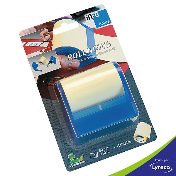 Note adhesive repositionnable en rouleau 60 mm x 10 m. permet d’adapter le format du support a la longueur de votre message. une recharge pour votre derouleur info notes, fabriquee avec une colle base aqueuse, sans solvants, testee dermatologiquement, pour proteger l’environnement.