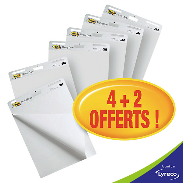 Paperboard adhésif Post-it Meeting Chart – 30 feuilles – lot de 4 + 2