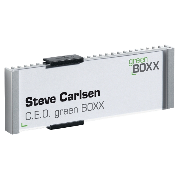 Plaque de porte fabriquee en aluminium rigide et munie d’une façade de protection en acrylique transparent antireflet. le systeme d’ouverture avec embout plastique permet de faire coulisser la plaque transparente pour une insertion et un retrait facile du bristol. personnalisable gratuitement sur www.durable.fr. livree avec vis et pastille adhesive. dimensions : l 14,9 x h 5,2 x ep. 1,4 cm.