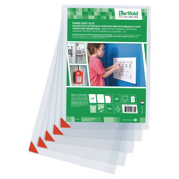 POCHETTE D’AFFICHAGE TARIFOLD KANG – ADHESIVE – COIN AIMANTE – A4 – PAR 5