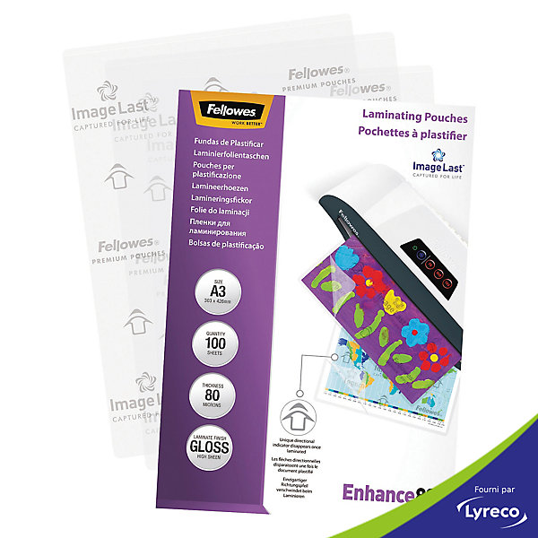 POCHETTE DE PLASTIFICATION A CHAUD FELLOWES A3 – 160 µ – BRILLANTE – PAR 100
