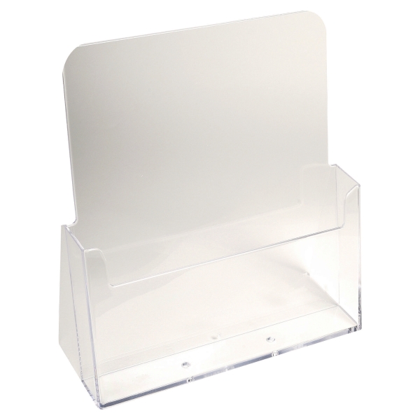 Porte-prospectus en polystyrene cristal. 1 poche pour documents au format a5. profondeur utile de 2,8 cm. presentoir monobloc (pret a l’emploi).