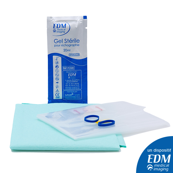 Protection sonde superficielle stérile 15 x 80 cm échocover en polyéthylene avec gel stérile – Boîte de 25