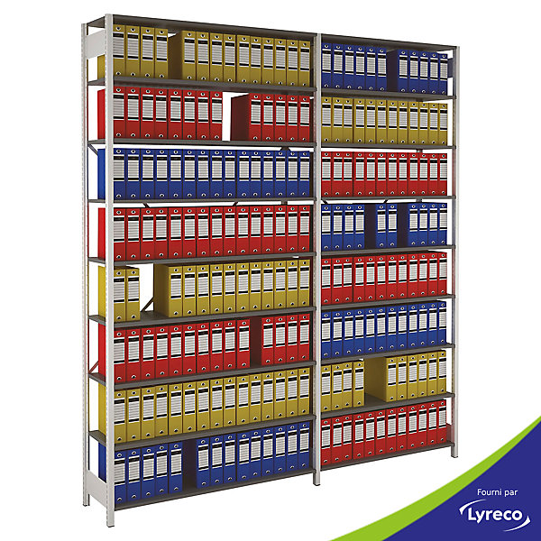 Proclass vous offre de multiples solutions d’amenagement pour votre univers bureaux. rayonnage metallique destine au stockage de dossiers suspendus, classeurs et boites d’archives. niveaux/tablettes reglables au pas de 25 mm. echelles pleines aux extremites. tablettes metalliques de longueur 1200 mm, profondeur de 362 mm. charge admissible par niveau : 80 kg pour longueur 1200 mm. finition en coloris blanc ral 9016, peinture epoxy. livraison directe fabricant sous 10 jours ouvres. produit ni repris ni echange. livre pas de porte. non monte, non installe. pour une livraison dans le batiment en rez-de-chausse ou en etage et/ou installation, un devis doit etre etabli.