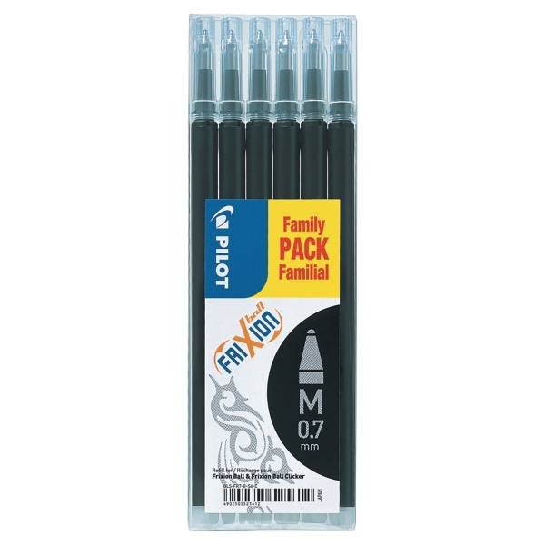 Recharge roller Pilot Frixion Clicker / Ball / Zone – noire – lot de 6