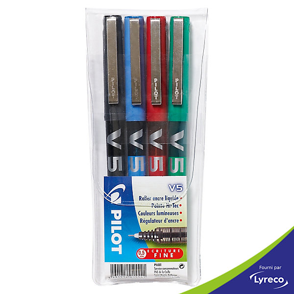 Roller Pilot V5 Hi-Tecpoint – encre liquide – pointe fine – assortis – par 4