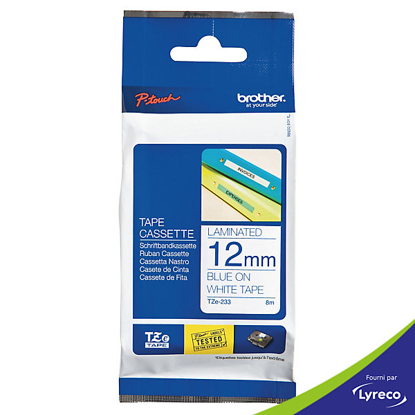 Les etiquettes p-touch brother tze conviennent pour une utilisation aussi bien a la maison, au bureau que dans l’industrie. meme exposee a des chocs, a des fortes temperatures (-90 °c/ 150 °c), aux rayons du soleil (uv), a l’eau et aux produits chimiques. les etiquettes p-touch sont conçues pour durer. 12 mm de largeur. longueur 8 m.