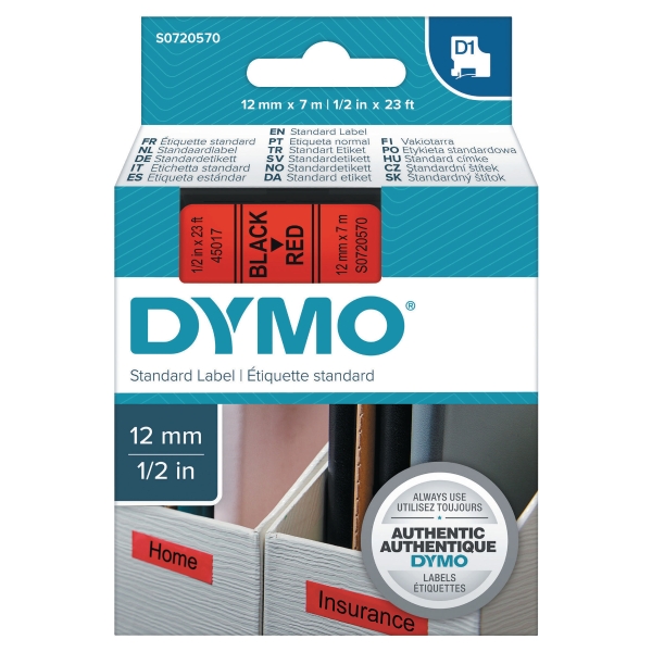 Ruban Dymo D1 – 12 mm – noir sur rouge