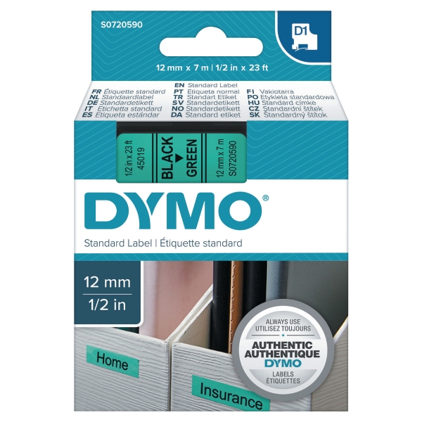 RUBAN DYMO D1 – 12 MM – NOIR SUR VERT