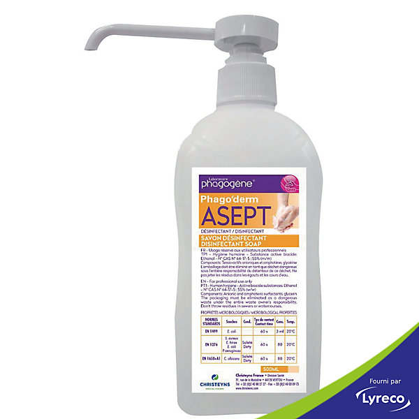 SAVON MAINS DESINFECTANT PHAGO’DERM ASEPT – FLACON POMPE DE 500 ML