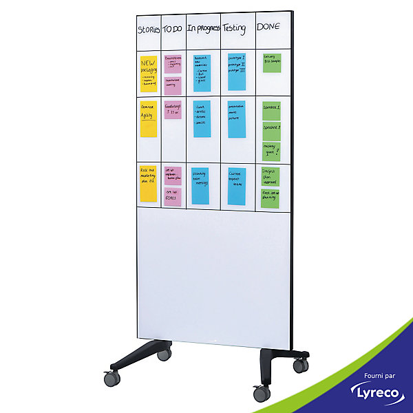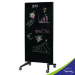 Optez pour ce tableau mobile en verre design et elegant qui vous permettra d’ecrire et d’echanger vos idees. ideal pour amenager vos espaces de travail et vos reunions, ce tableau permettra de developper un projet de a a z et d’accroitre votre creativite. – verre trempe et surface en verre dote de deux faces magnetiques, vous pourrez y positionner vos notes et documents. – surface lisse qui s’entretien tres facilement avec une utilisation de marqueurs pour tableau blanc. – le tableau est dote de 4 roulettes a frein. – pietement noir stable avec une resistance aux rayures. le produit est garanti 2 ans. livraison directe fabricant sous 10 jours ouvres. produit ni repris ni echange. livre non monte.
