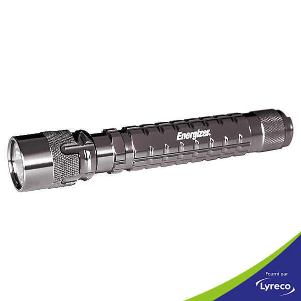 Bonne prise en main grace au manche antiderapant. variateur d’intensite pour une meilleure adaptation aux besoins, economie d’energie et augmentation de l’autonomie. portee 115 metres. 400 lumens. autonomie : jusqu’a 21 heures (basse intensite). faisceau concentre. étancheite ipx4. lentille incassable. resiste a une chute de 1 metre. livree avec une dragonne et 2 piles aa lithium. https://data.energizer.com/general-info