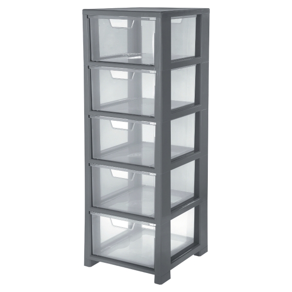 TOUR DE RANGEMENT CEP – 5 TIROIRS – NOIR/TRANSPARENT