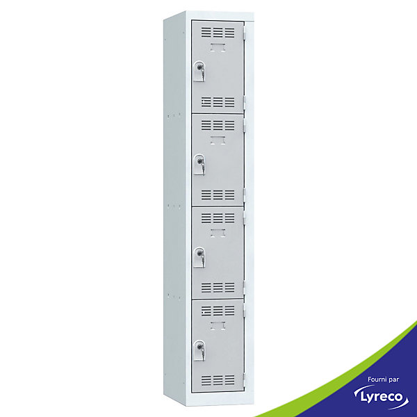 Vestiaire multicases Pierre Henry – 1 colonne – 4 cases – à clé – gris