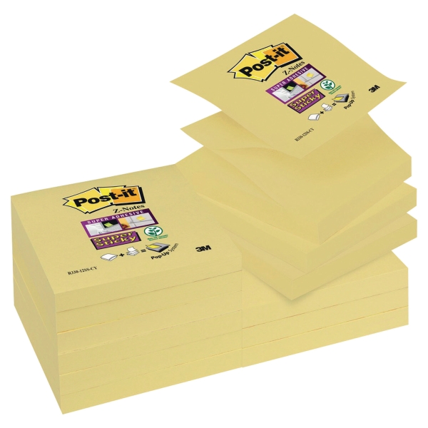 Z-NOTES POST-IT SUPER STICKY – 76 X 76 MM – JAUNES – 12 BLOCS X 90 FEUILLES